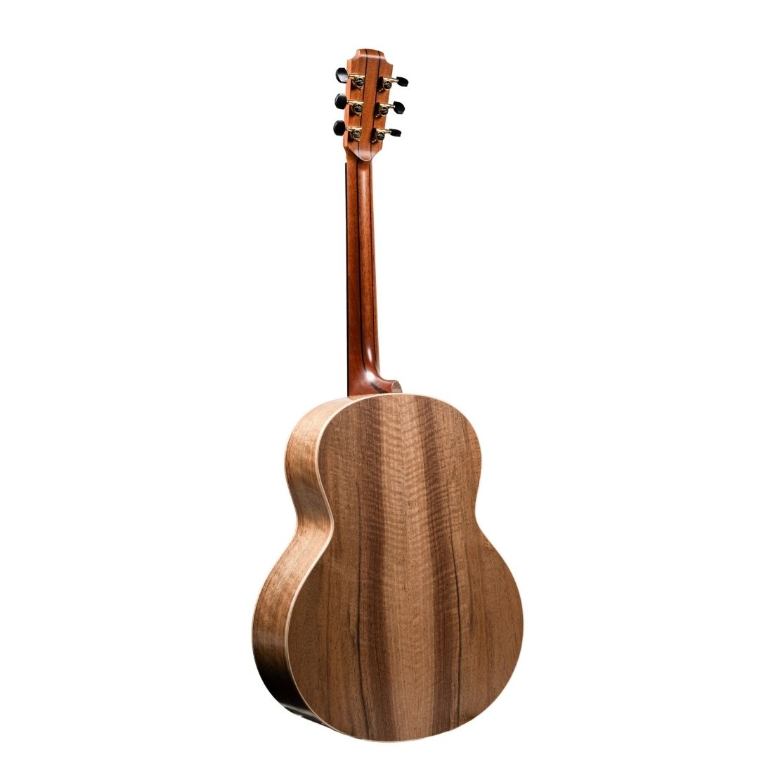George Lowden is very fond of Walnut as a choice of back and sides and feels that Walnut could be described as offering the best of both worlds when compared with the more traditional choices of Rosewood and Mahogany.