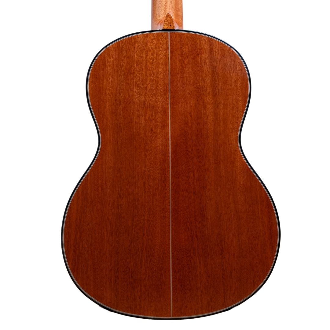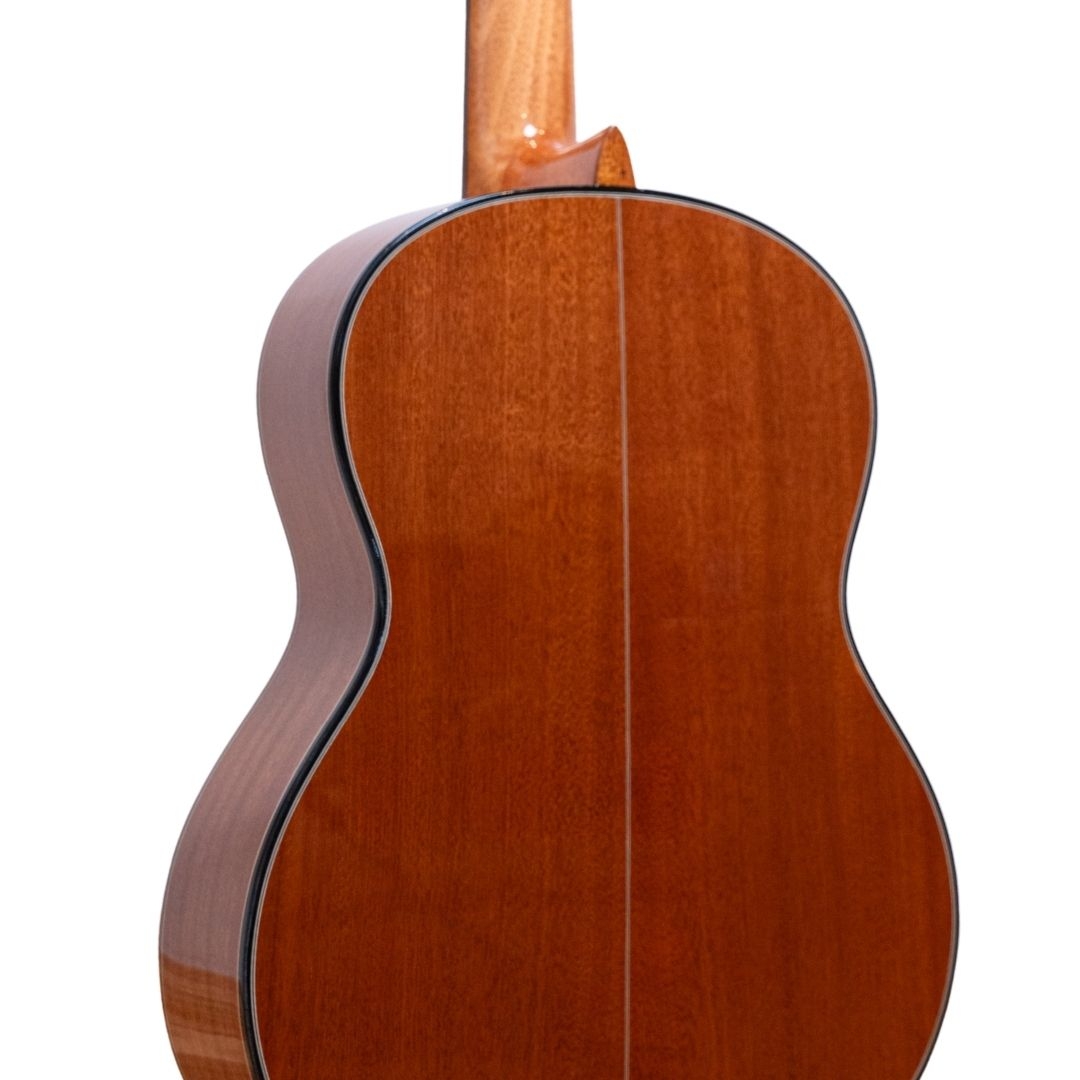The A1 is crafted with the traditional spanish heel neck joint which is considered the most highly developed neck joint in guitar construction. It is significantly more complex than a glued neck, but the sonic benefits are worth the effort. When building a guitar with a Spanish neck, neck and headblock are carved from one piece of wood.