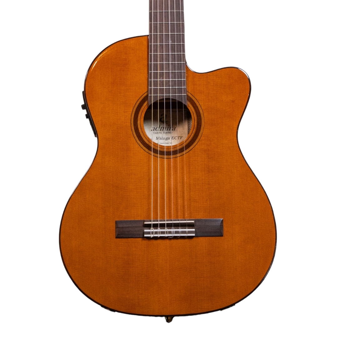 The Admira Malaga ECTF is an electro-classical guitar with cutaway and thin body. Despite its very reasonable price, the Admira Malaga ECTF is a genuine Spanish guitar which is made in Spain using superb materials, precise craftsmanship and a very lovely sound for the price. The action of the guitar has been calibrated to perfection and the sound is very well balanced. As well as the solid cedar top, the Admira Malaga has a sapelly back and sides, African Mahogany neck, and rosewood fingerboard and bridge. With nickel-plated machine heads. The electronics are the Admira EQ-6 or Fishman Classic III.