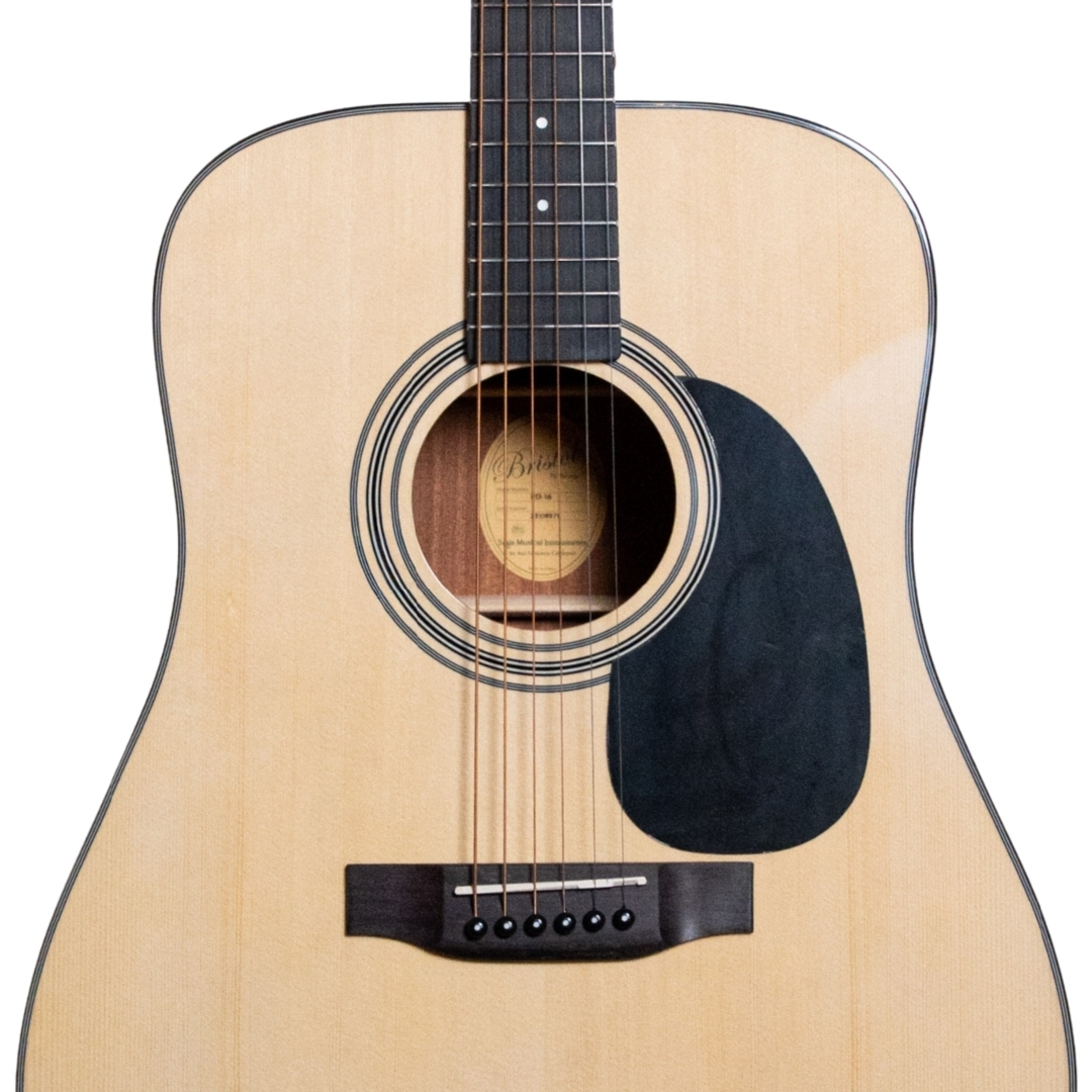 Bristol BD-16 ถ้าพูดถึงกีตาร์ในงบหกพันหน่อย ๆ ถือว่าคุ้มราคา สำหรับท่านที่ชอบกีตาร์เสียงใสๆ ลุยได้ทุกที่ต้องตัวนี้เลย กีตาร์ Dreadnought BD-16 ที่เป็นรุ่นยอดนิยม ที่มีคุณสมบัติทั้งหมดที่ใคร ๆ ก็คาดหวังให้มีจากกีตาร์แพงๆ ในกีตาร์ขนาด BD-16 ไม้หน้าทำจากไม้ Spruce ไม้ด้านหลังและด้านข้างทำจากไม้ Mahogany ให้เสียงที่ยอดเยี่ยม ดังกังวาล คมชัดทุกโน๊ต